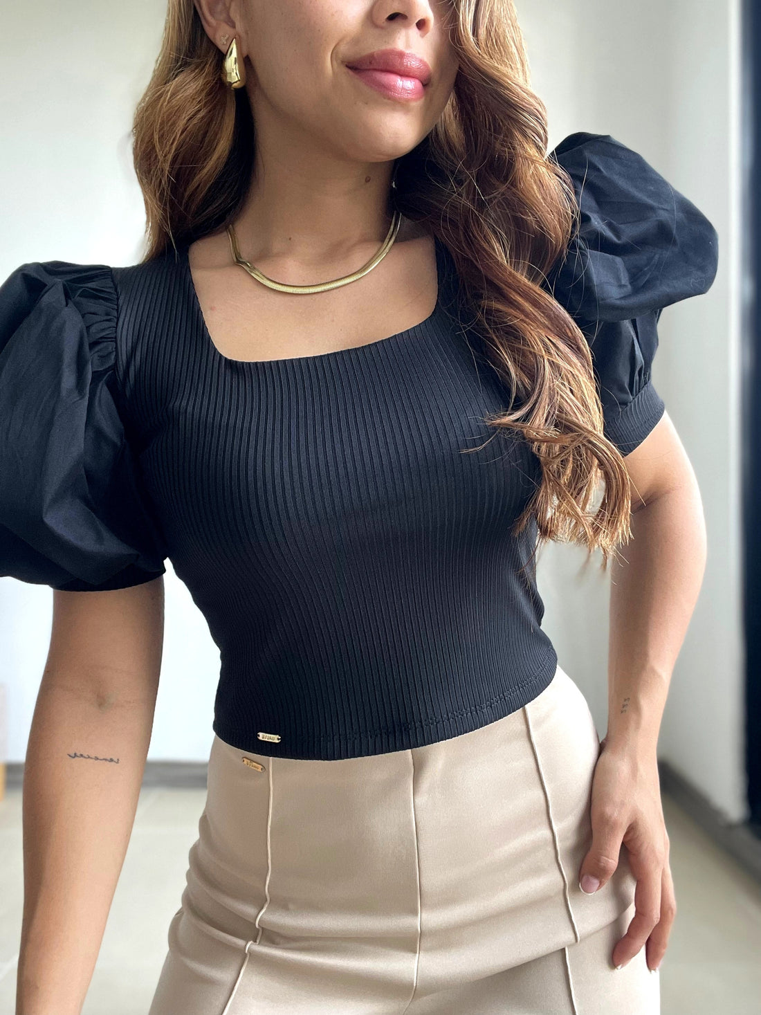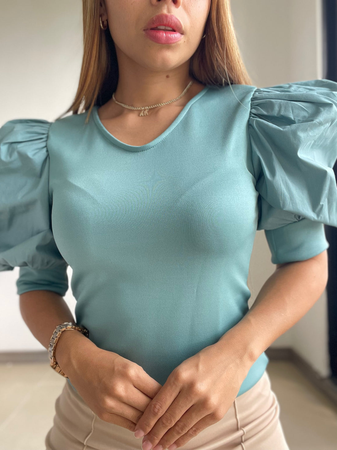 Blusa Scuba Manga Globo En Popelina