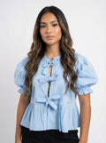 Blusa Manga Corta Con Volantes Amarrar