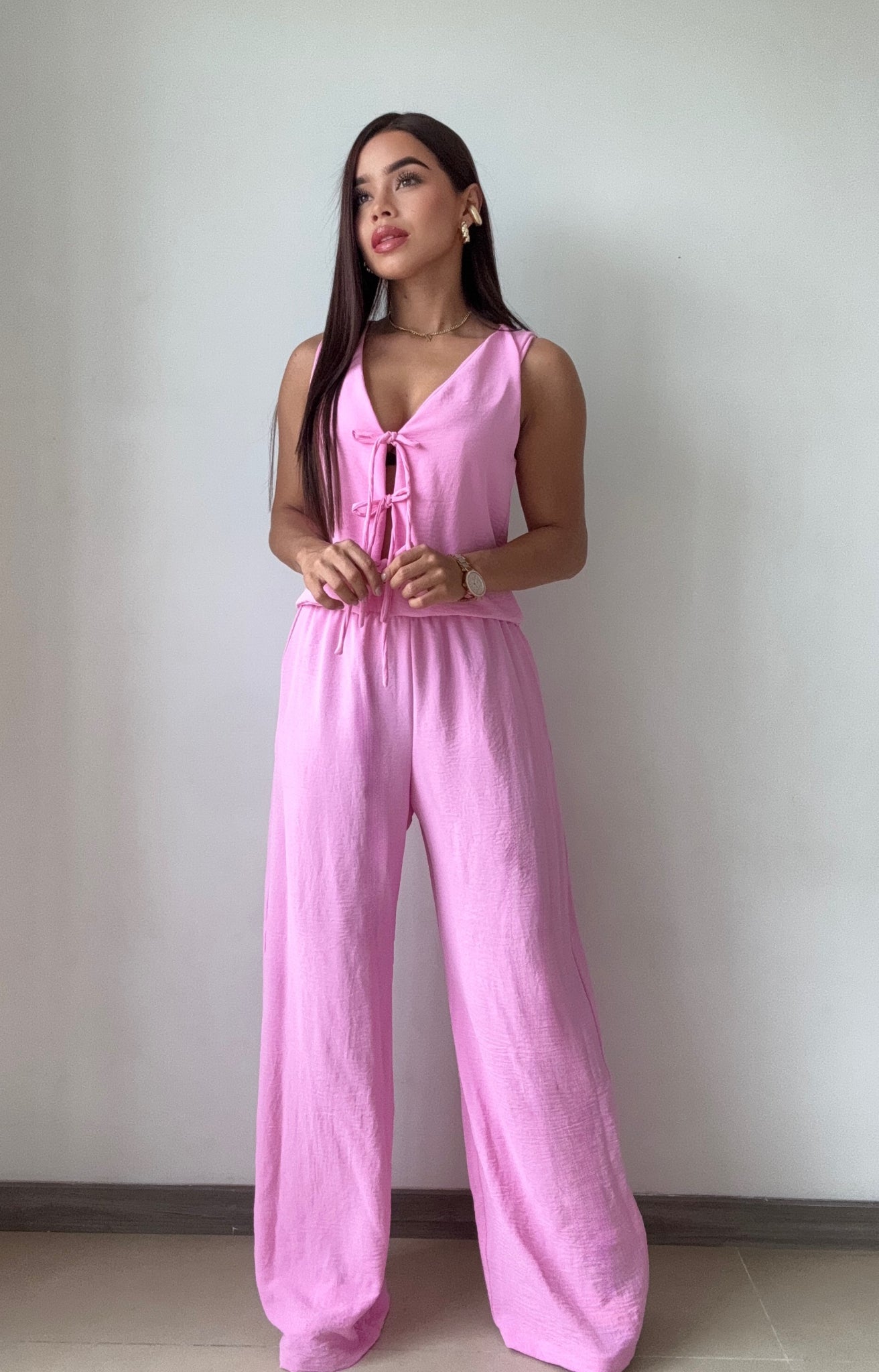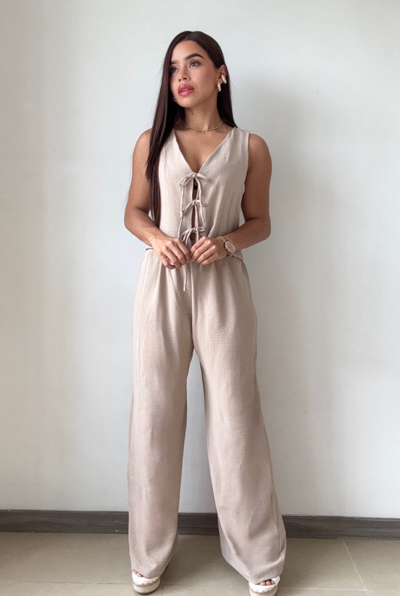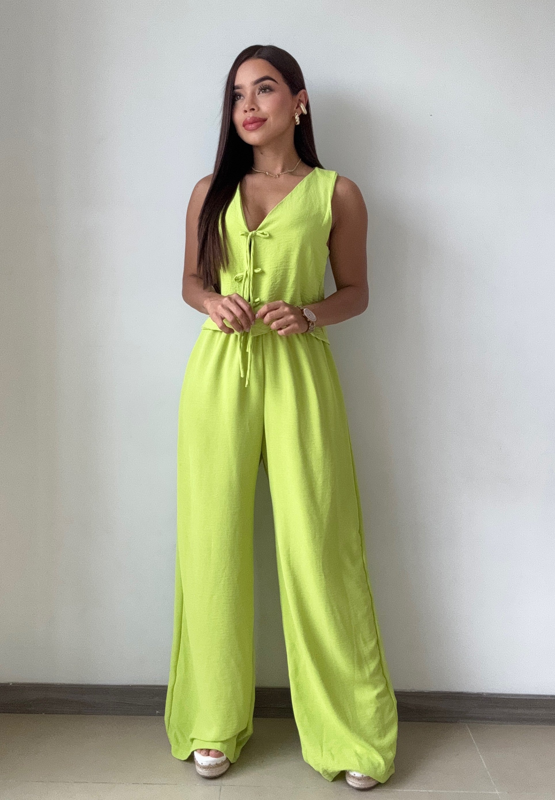 Conjunto De Blusa Con Lazos Frontales