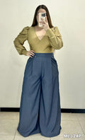Pantalon Prense Bota Ancha Con Bolsillo