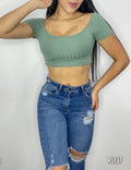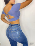 Blusa Manga Corta Escote Espalda Amarrar