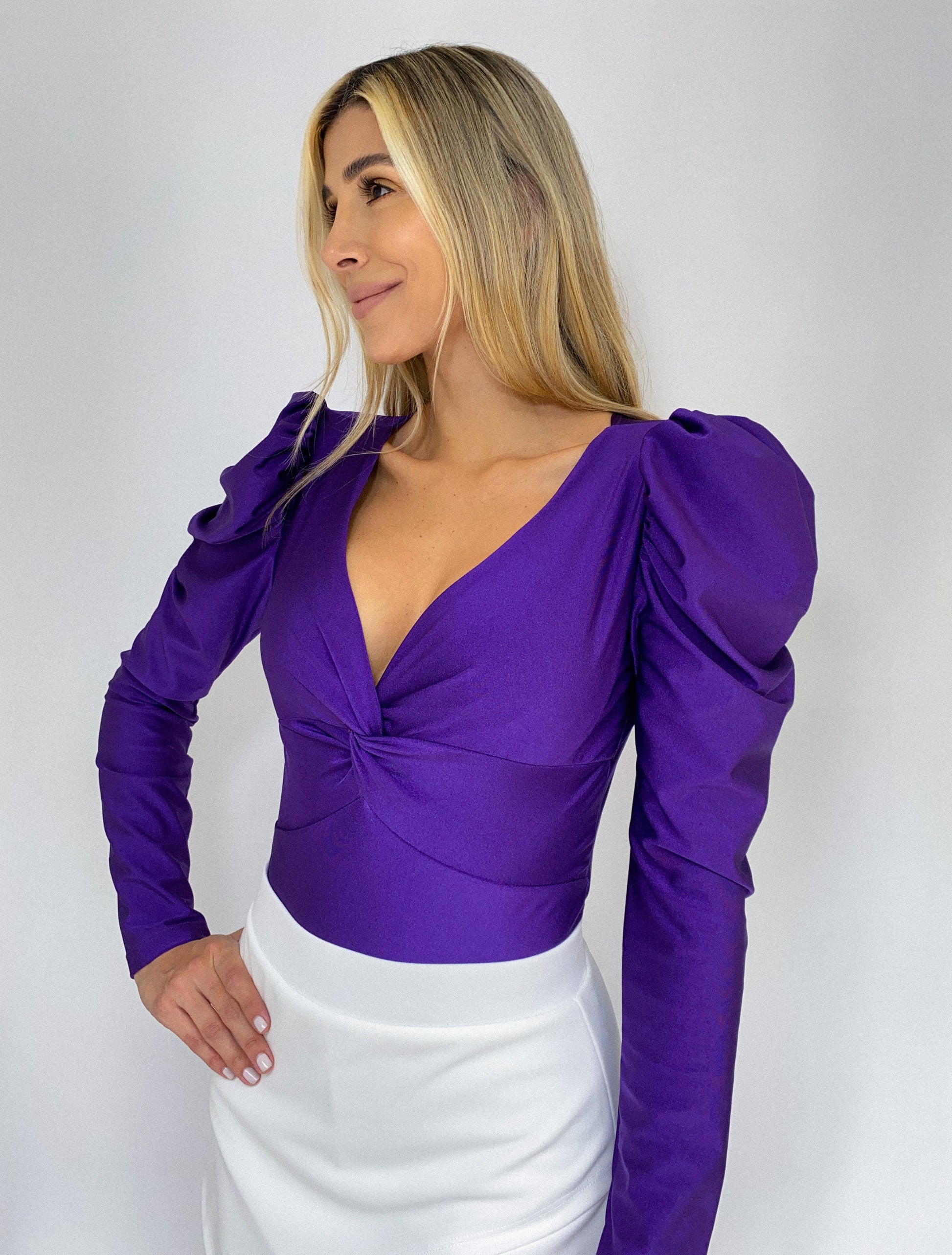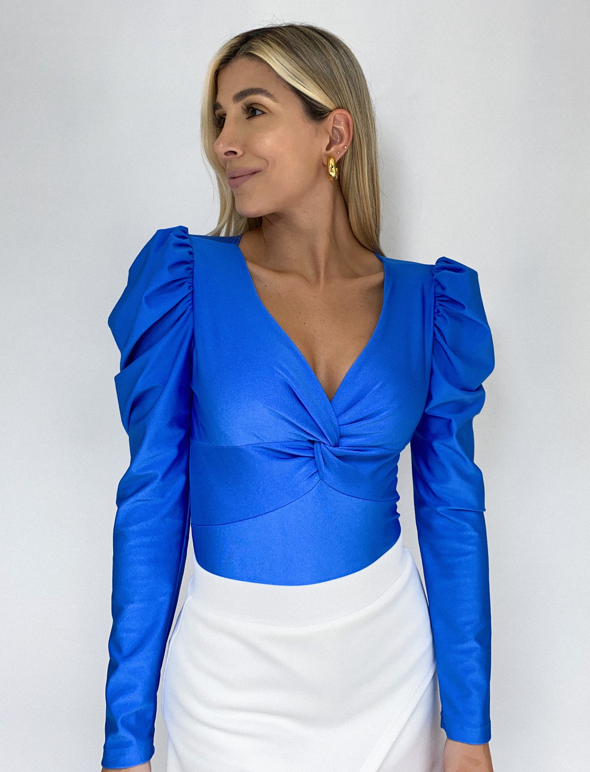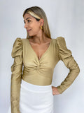 Blusa Manga Larga Bombacha Nudo En Busto