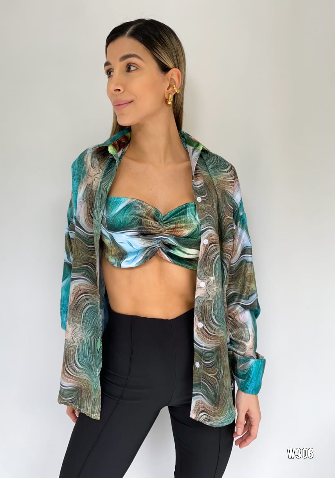 Camisera Con Crop Top Estampada